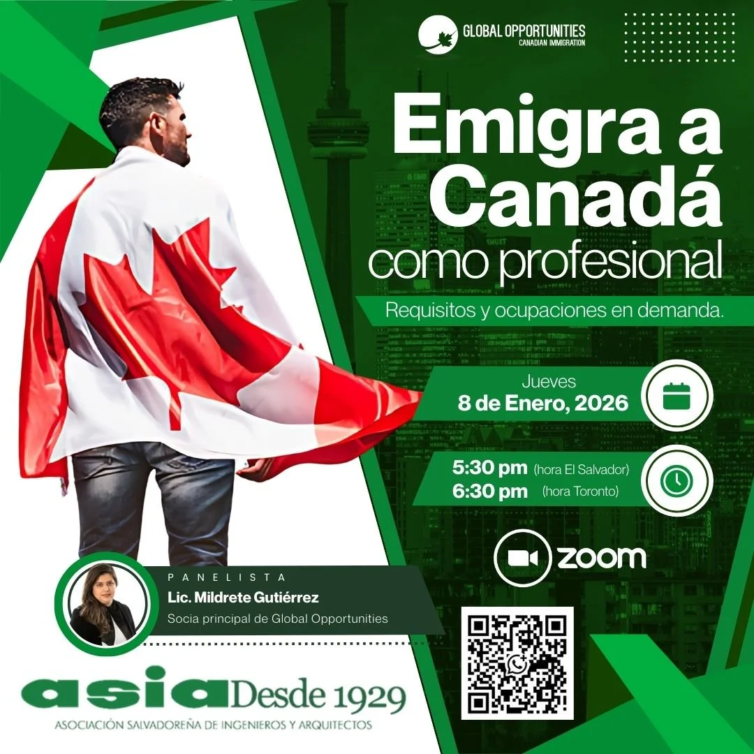 Gracias por tu interés en asistir a nuestro seminario con la Asociación Salvadoreña de Ingenieros y Arquitectos (ASIA) sobre cómo emigrar a Canadá y obtener tu residencia permanente,te invitamos a llenar el formulario para enviarte la información de inscripción.