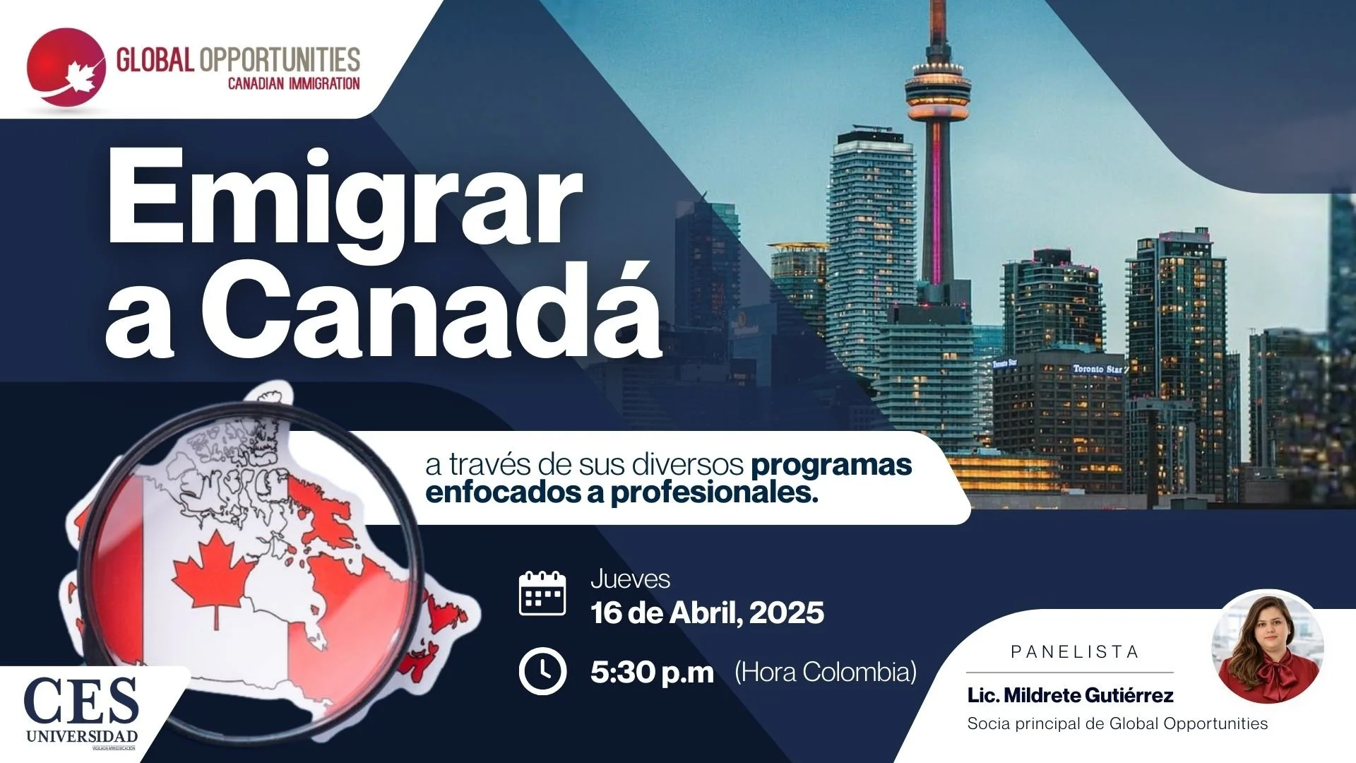 Gracias por tu interés en asistir a nuestro seminario con la Universidad CES de Colombia sobre cómo emigrar a Canadá y obtener tu residencia permanente. Te invitamos a llenar el formulario para enviarte la información de inscripción.