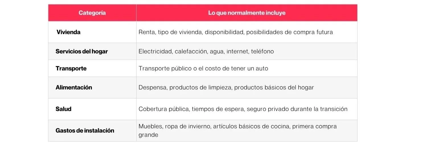 Porque una cosa es llegar a Canadá, y otra es entender cuánto cuesta realmente empezar. El Gobierno de Canadá aconseja expresamente a los recién llegados investigar el costo de vida en el lugar donde planean establecerse, porque los costos varían significativamente según la ubicación y la vivienda suele ser el gasto más grande. También ofrece servicios gratuitos previos a la llegada para ayudar a los recién llegados elegibles y a sus familias a prepararse antes de viajar.