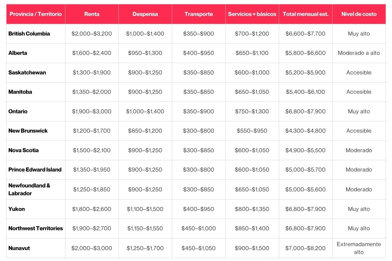 No existe un solo costo de vida en Canadá. Los costos varían según la provincia, la ciudad, el tamaño de la familia, el estilo de vida e incluso el tipo de vivienda que elija. El propósito de este artículo es ofrecer un marco de planificación útil basado en fuentes oficiales actuales.