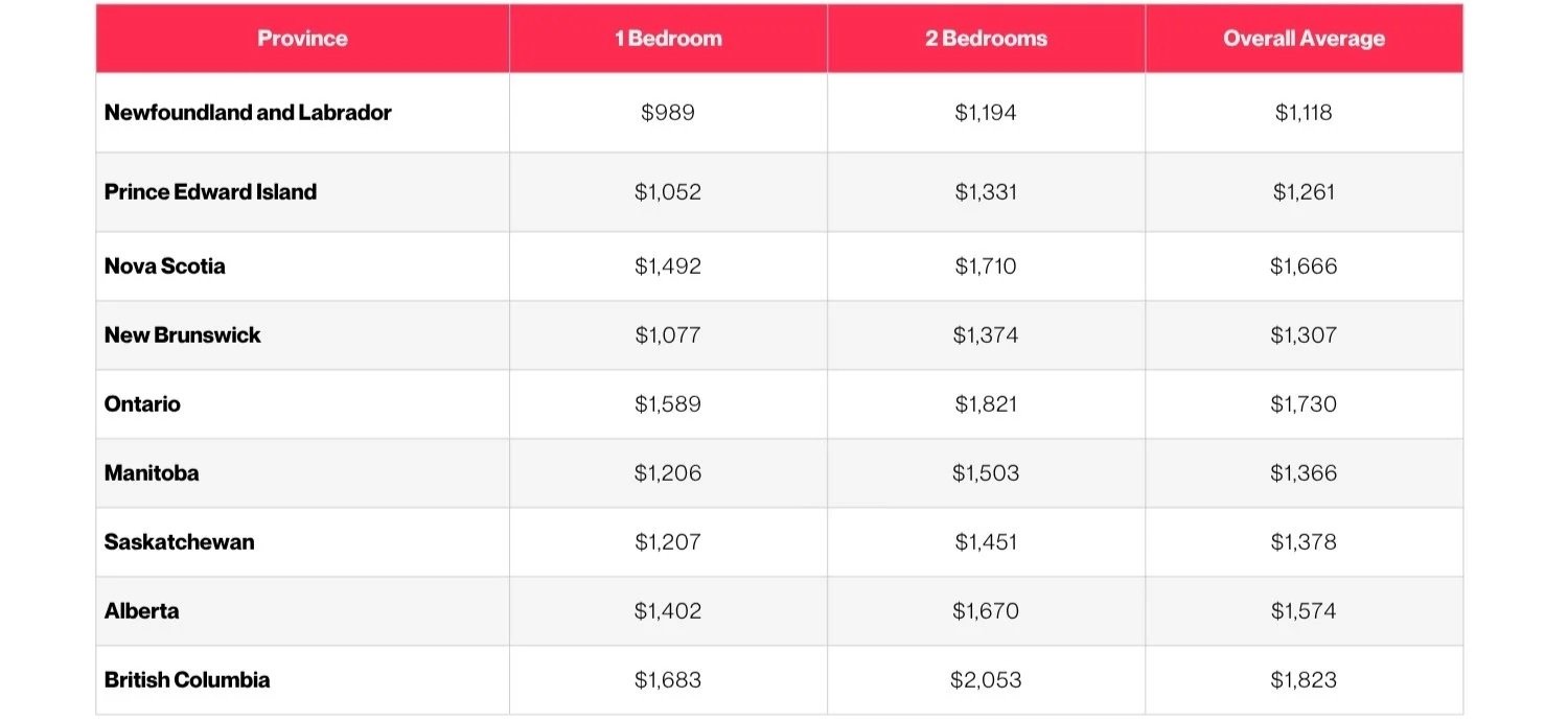 British Columbia and Ontario remain the most expensive provinces to rent in on average, while Manitoba, Saskatchewan, New Brunswick, and several Atlantic provinces remain more affordable. CMHC 2025 vacancy rates: 4.2% in Alberta, 3.3% in Saskatchewan, 3.2% in Ontario, 2.9% in Manitoba and New Brunswick, 2.6% in Nova Scotia, 2.1% in Newfoundland and Labrador, and 2.0% in Prince Edward Island.