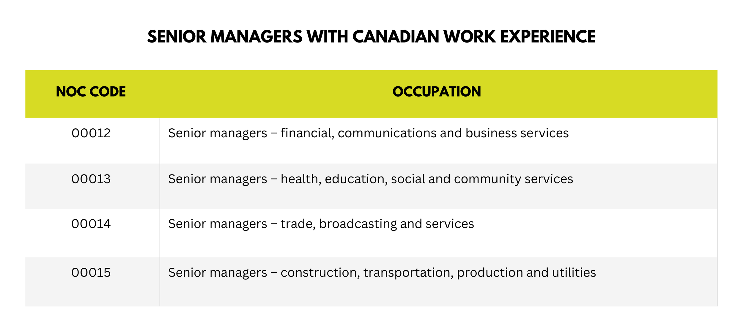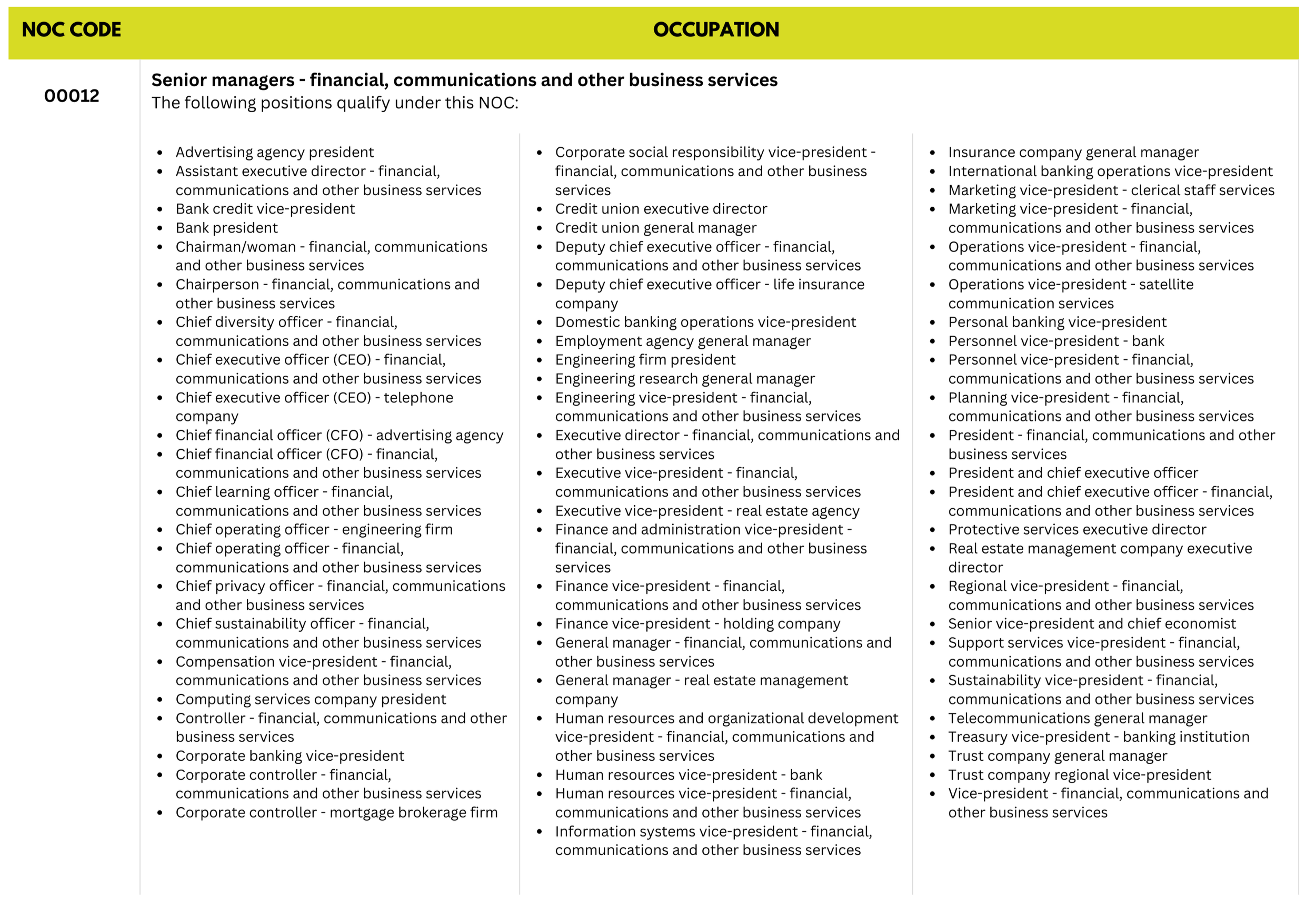 Eligible NOC Codes (Senior Management – NOC 2021)