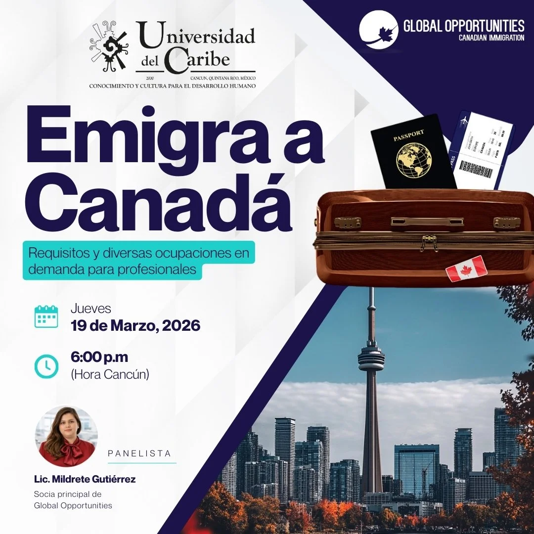 Gracias por tu interés en asistir a nuestro seminario con la Universidad del Caribe sobre las opciones migratorias en Canadá para profesionales, te invitamos a llenar el formulario para enviarte la información de inscripción.