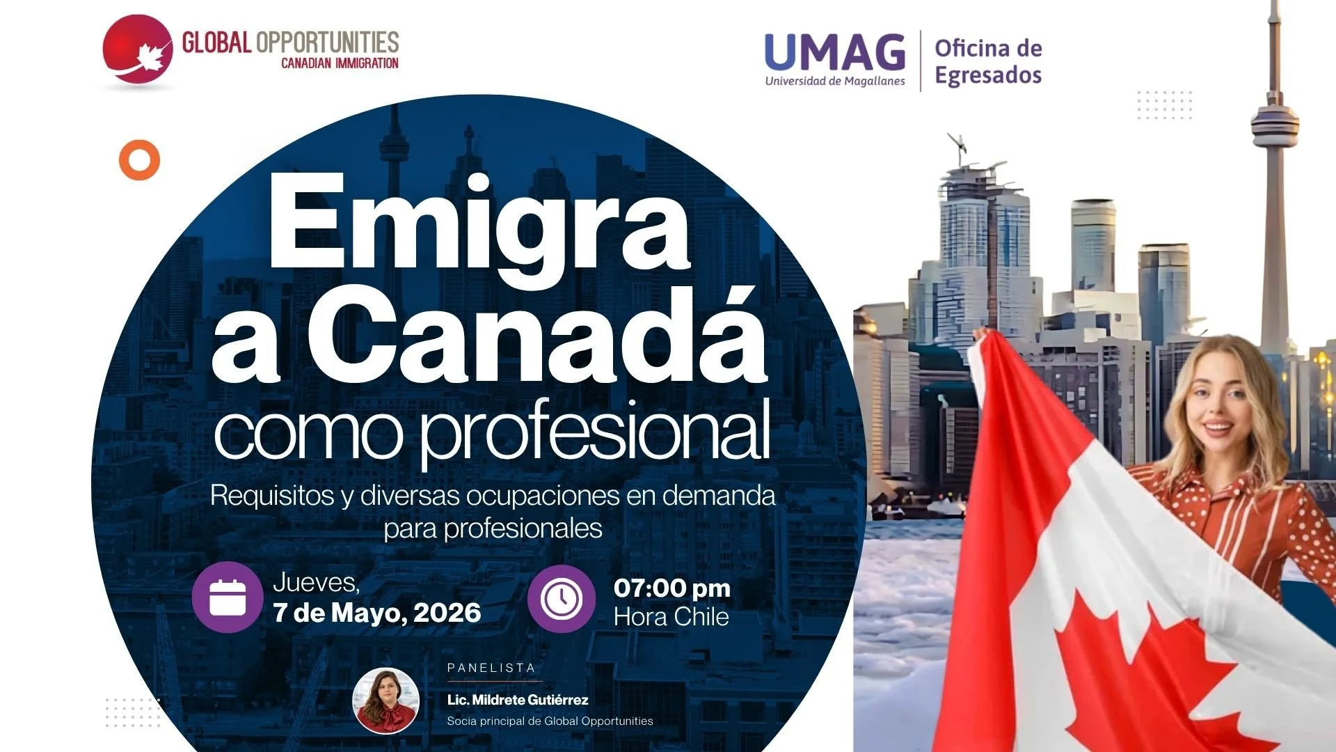 Gracias por tu interés en asistir a nuestro seminario con la Universidad de Magallanes sobre cómo emigrar a Canadá y obtener tu residencia permanente,te invitamos a llenar el formulario para enviarte la información de inscripción.